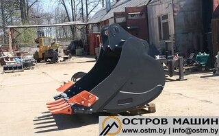 Универсальный ковш - один из основных рабочих инструментов экскаватора-погрузчика. Большенство работ связанных с выемкой грунта производится именно универсальными ковшами: рытье траншей, канав, обустройство кюветов; рытье котлованов; в некотрых случаях, погрузка тяжелого грунта.