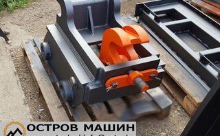 Быстросъемное устройство предназначено для облегченной смены навесного оборудования на задней рукояти экскаватора-погрузчика. Зацепление ковша обеспечивается благодаря пружинному механизму с последующей установкой страховочного стопора.