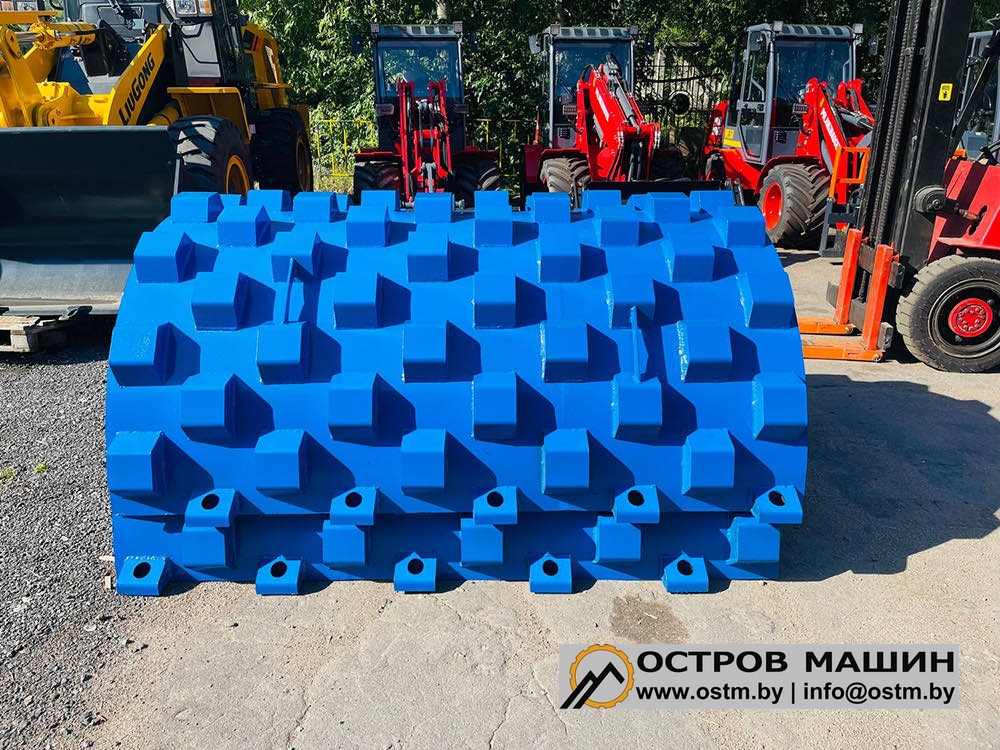 Двухсекционный, фиксируемый на зажимах бандаж легко и быстро превращает гладкий валец грунтового катка в кулачковый. С его помощью каток эффективно уплотняет песчаные и глинистые грунты, формируя прочный слой даже из рыхлых грунтов.