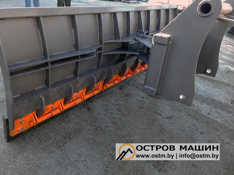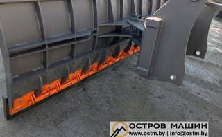 По желанию клиента, снеговые отвалы для телескопических погрузчиков могут комплектоваться как резиновой кромкой, так и стальным ножом для снятия слежавшегося снега. Для работы в сложных условиях отвал может быть оснащен системой защиты от наезда на препятствие. Данная система устанавливается на место крепления кромки и может быть приобретена отдельно.