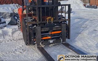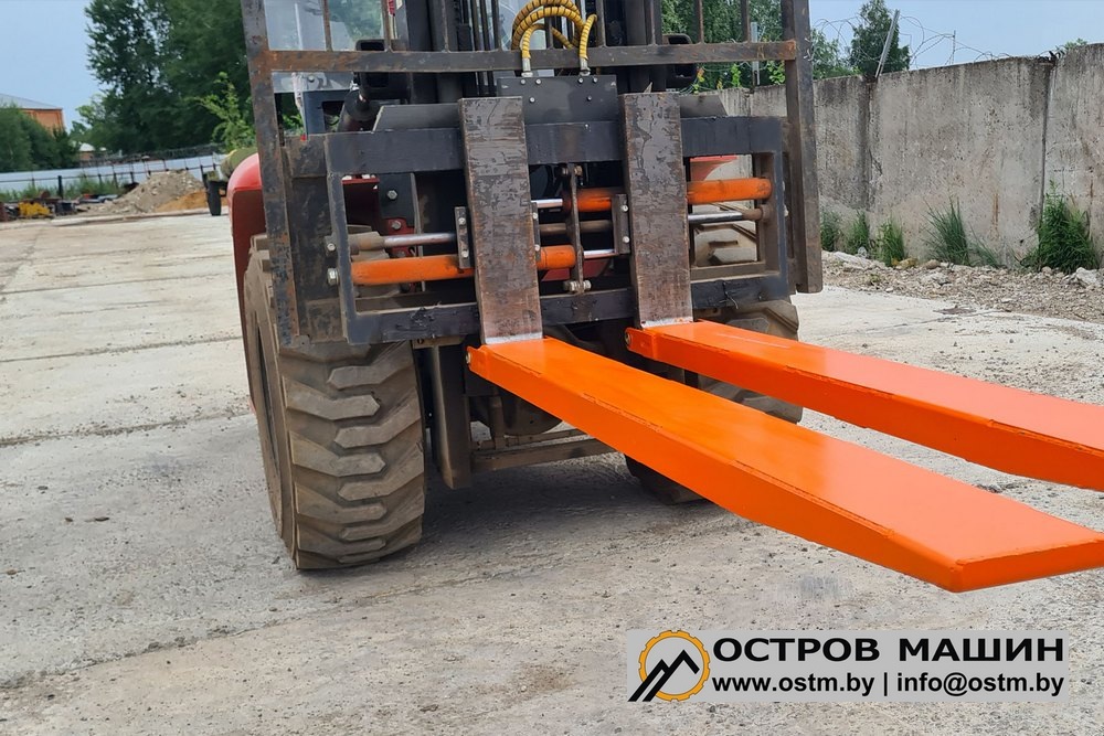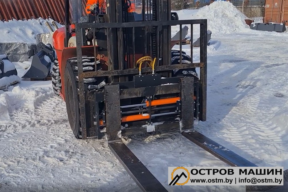 Позиционер оснащен гидравлическим синхронизатором, который обеспечивает равномерное перемещение клыков. Усиленная конструкция позиционера позволяет использовать его на соответствующих погрузчиках без ограничения грузоподъемности.