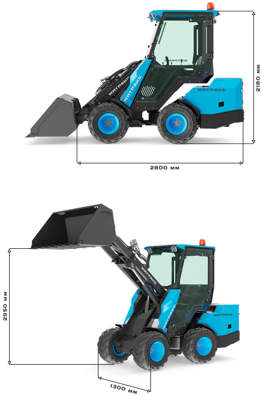 Мини-погрузчики Митракс имеют очень низкий центр тяжести, намного ниже, чем у большинства погрузчиков с бортовым поворотом и у традиционных колесных погрузчиков.