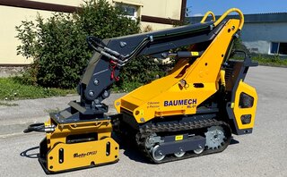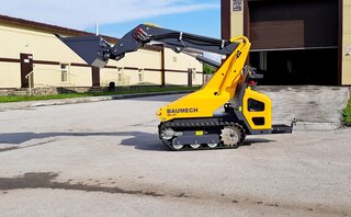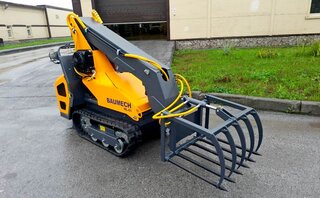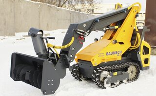 Большой выбор быстросменного навесного оборудования делает мини-погрузчики BAUMECH супер универсальными, а грузоподъёмность от 450 кг, высота подъёма стрелы 2,5 м и трёхконтурная гидросистема, позволяет ему заменить своих старших конкурентов.