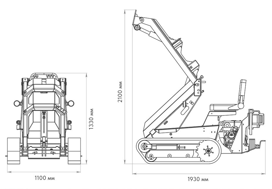 | Снаряженная масса без ковша/с ковшом | 650/700 кг. |