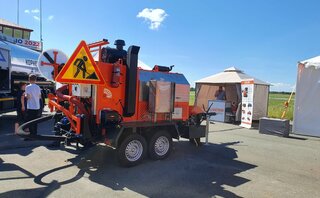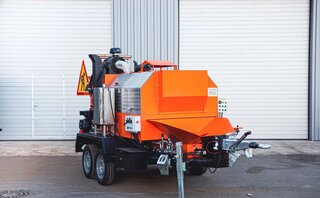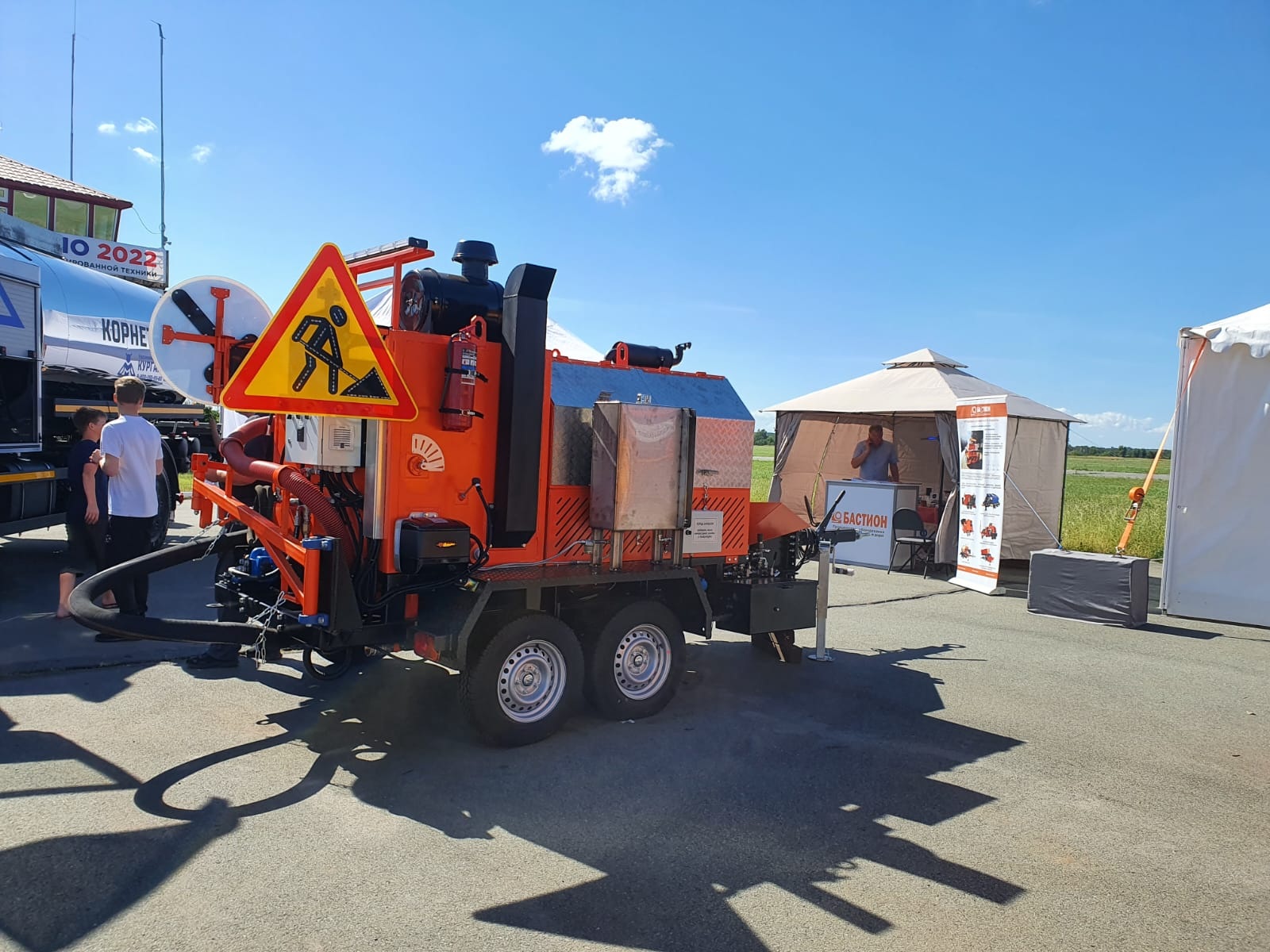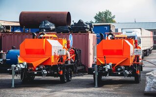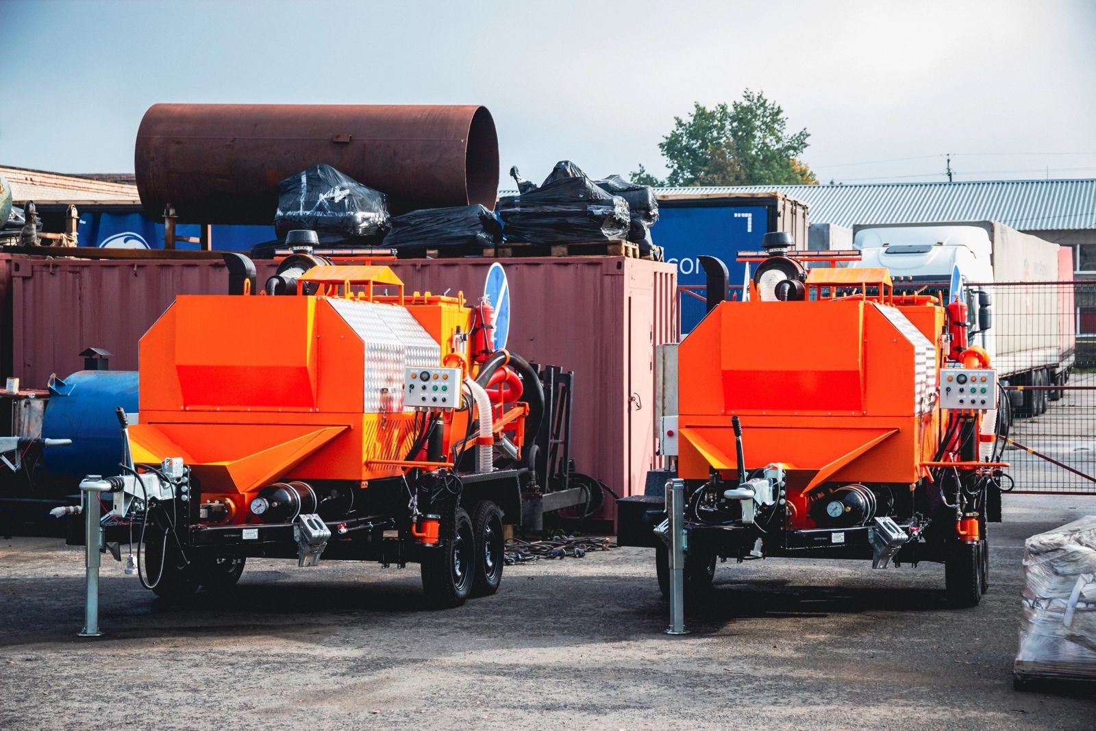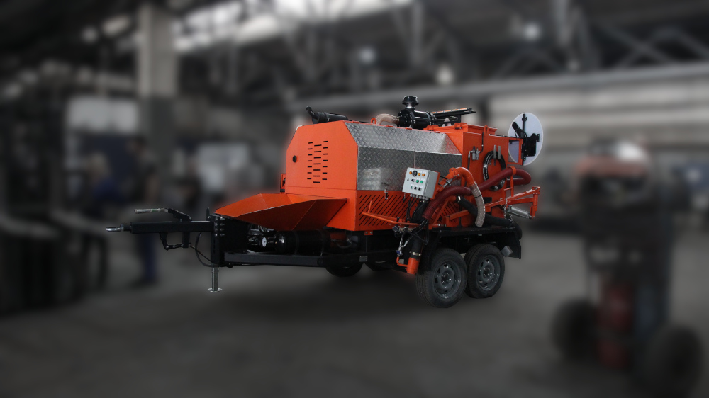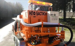 Установка для выполнения ямочного ремонта на автомобильных дорогах с асфальтобетонным покрытием c использованием кубовидного щебня и катионной эмульсии методом струйно-инъекционного напыления. Работы проводятся при температуре окружающего воздуха от плюс 5°C до плюс 40°C и относительной влажности не более 80%. |